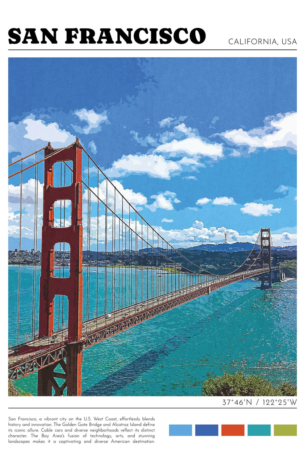 Décore n'importe quelle pièce de ta maison grâce à ce poster San Francisco graffiti. Imprimée sur une toile en coton de très bonne qualité, ton affiche street art rayonnera ton intérieur. N'attends plus et commande ton affiche déco dans la dimension qui te convient !